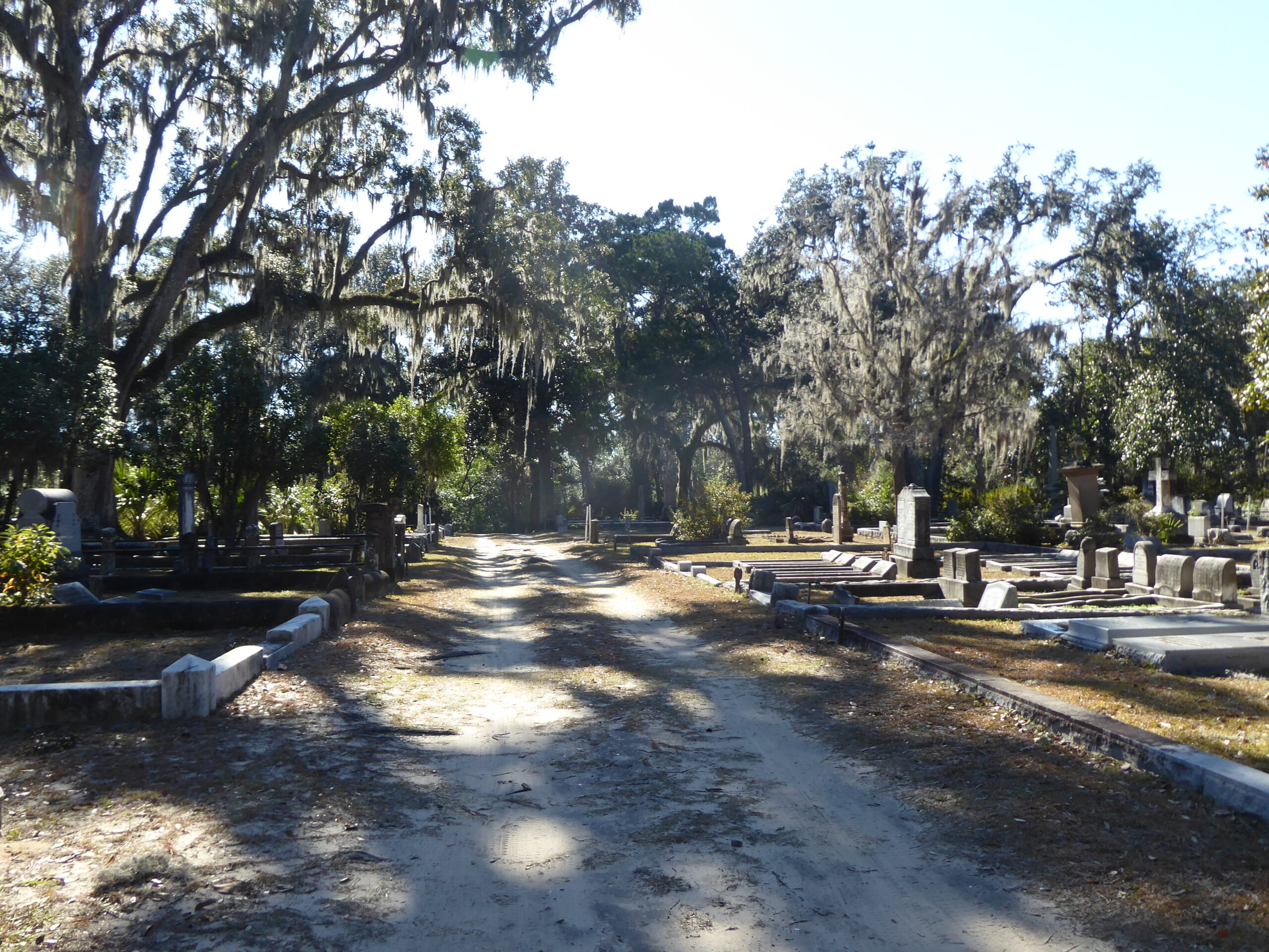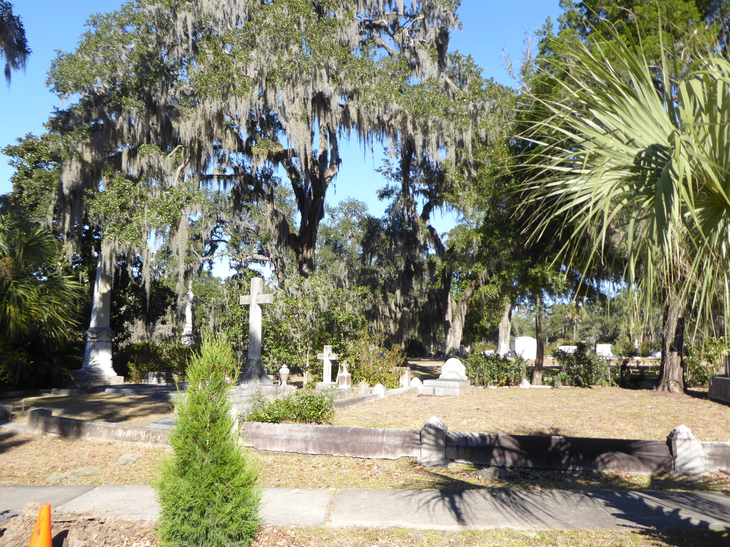 The two unique aspects of this cemetery are that Spanish moss, and the fact that it sits on the Wilmington River. This views of the river on a clear day are stupendous.