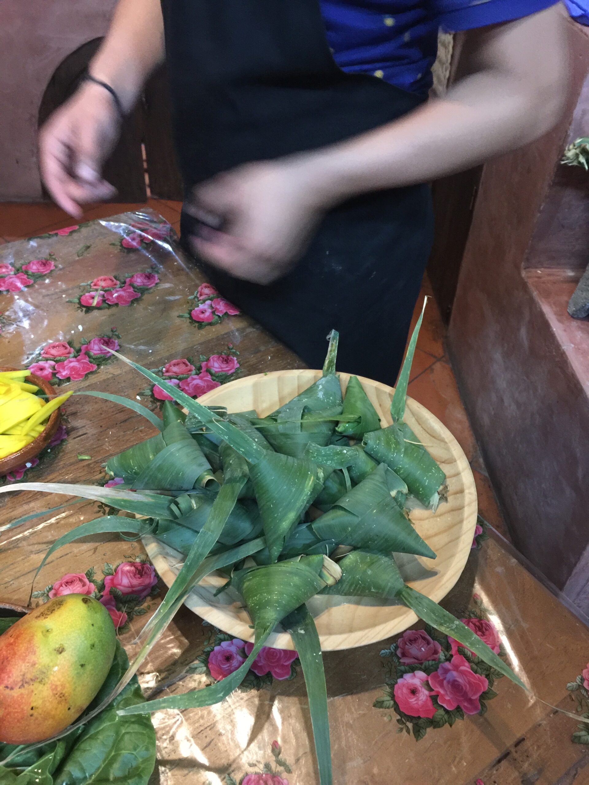 The first dish to make was corundas, essentially masa wrapped in a corn leaf in a triangular fashion.