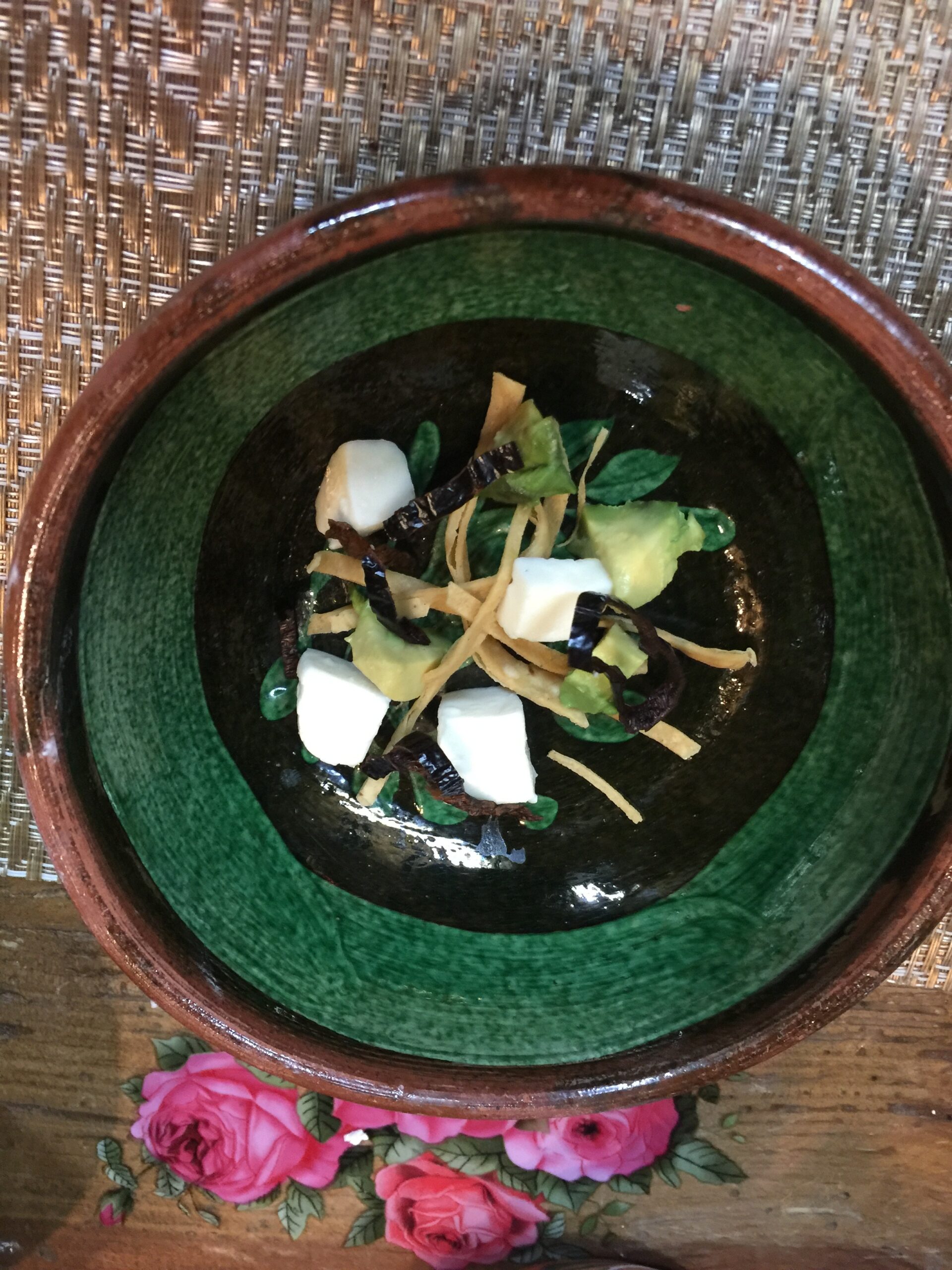 That looked a bit plain, so we garnished it with more cheese and tortilla strips.