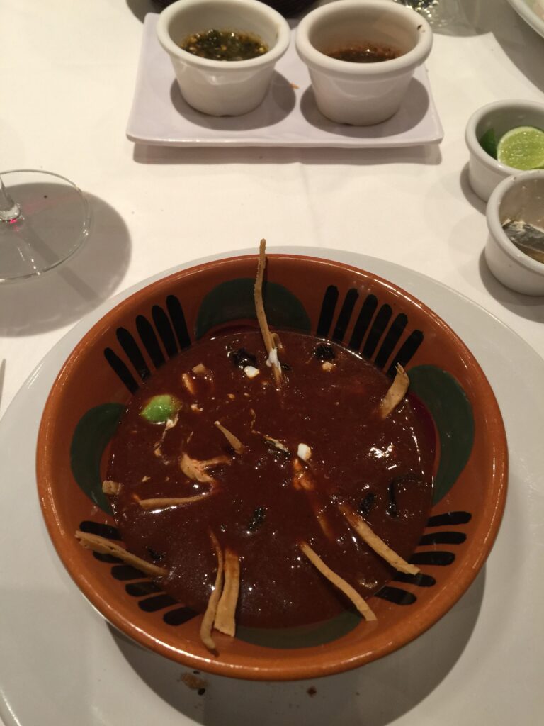 The starter was a tortilla soup with a bean base. Succulent.
