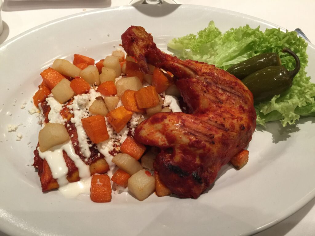 The entrée was a quarter chicken with vegetables.
