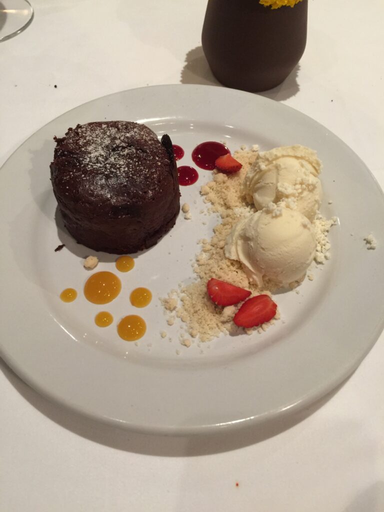 The dessert was chocolate bread with a side of vanilla ice cream.