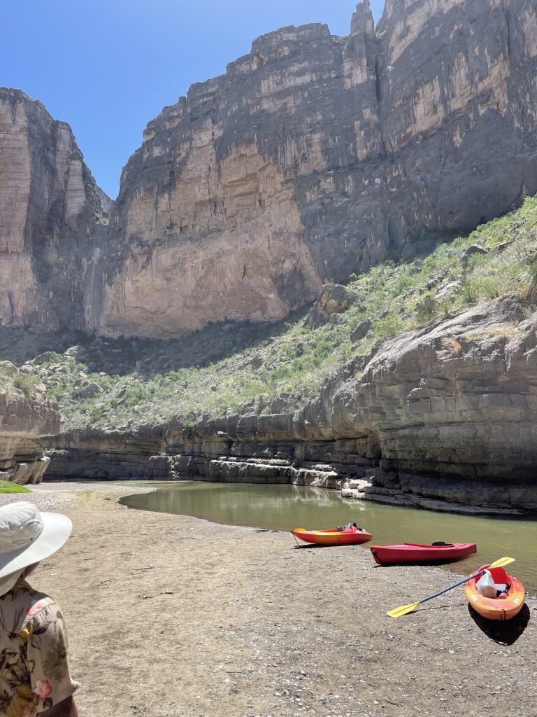 After a couple of hours of rafting we took a break. Good thing I bought a hat at the Chisos Lodge gift shop because the sun was blaring down.